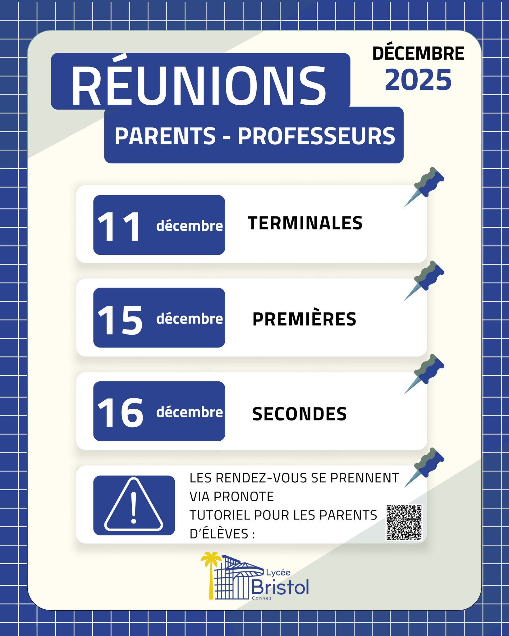 Lycée Bristol Cannes LYCEE GENERAL ET TECHNOLOGIQUE Collecte de jouets En Savoir + Rentrée 2025 Nous contacter L'offre de formation Offre de formation En Savoir + S'inscrire ou se réinscrire au Lycée Bristol Inscriptions et réinscriptions En Savoir + PRONOTE Télécharger le Certificat de scolarité depuis PRONOTE En Savoir + Acheter ses repas avec MyTurboself En Savoir + Bienvenue sur le site officiel du Lycée Bristol