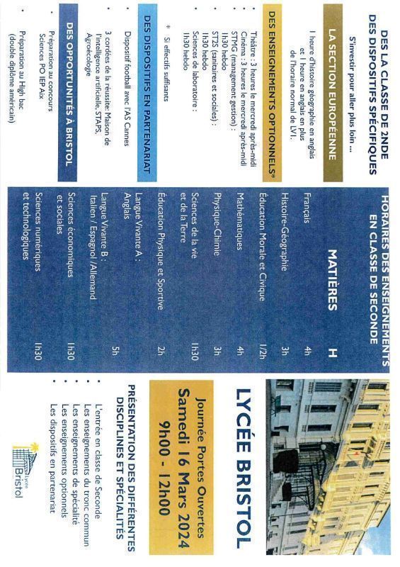 PORTES OUVERTES DU LYCÉE BRISTOL : 16 MARS 2024 9H - 12H