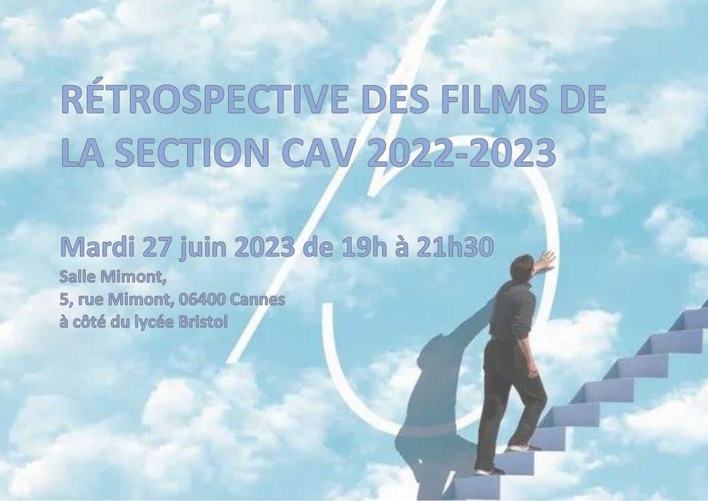Les films réalisés dans le cadre de la section CAV en 2022-2023 ont été projetés mardi 27 juin 2023 à 19h00 à la salle Mimont, 5 rue Mimont Cannes, à côté du lycée