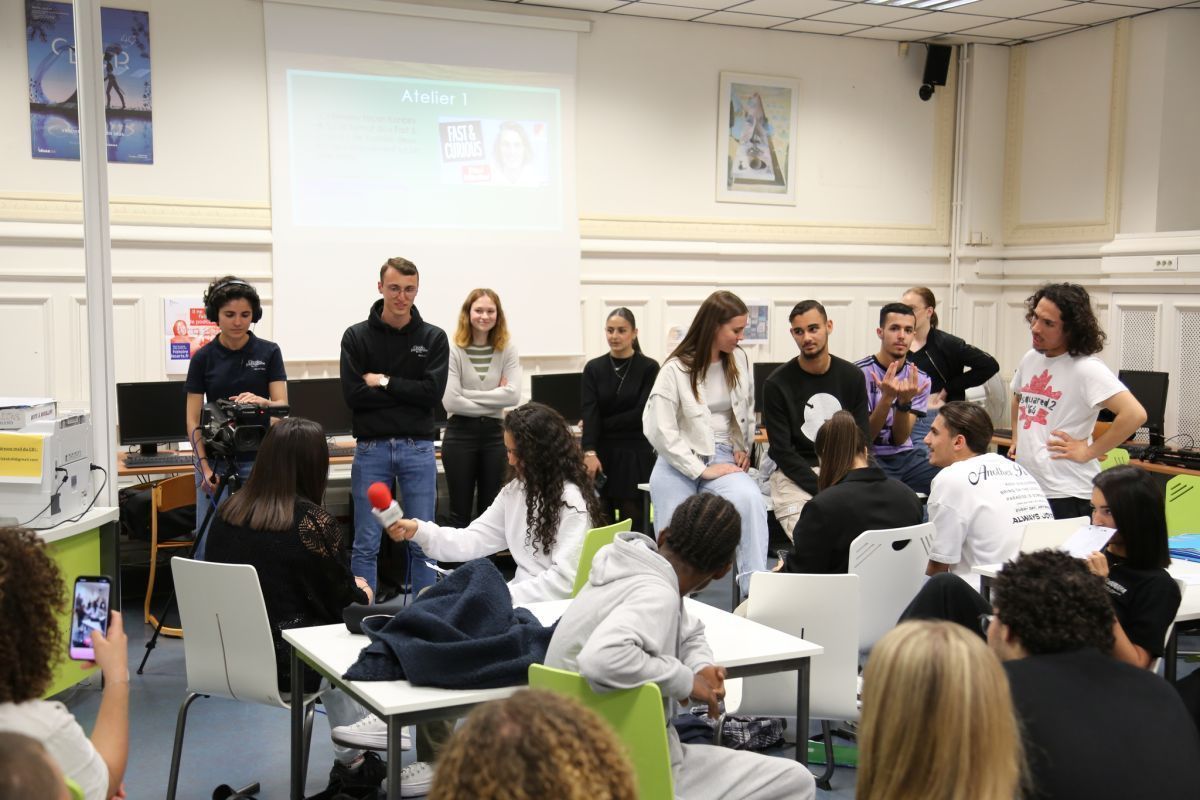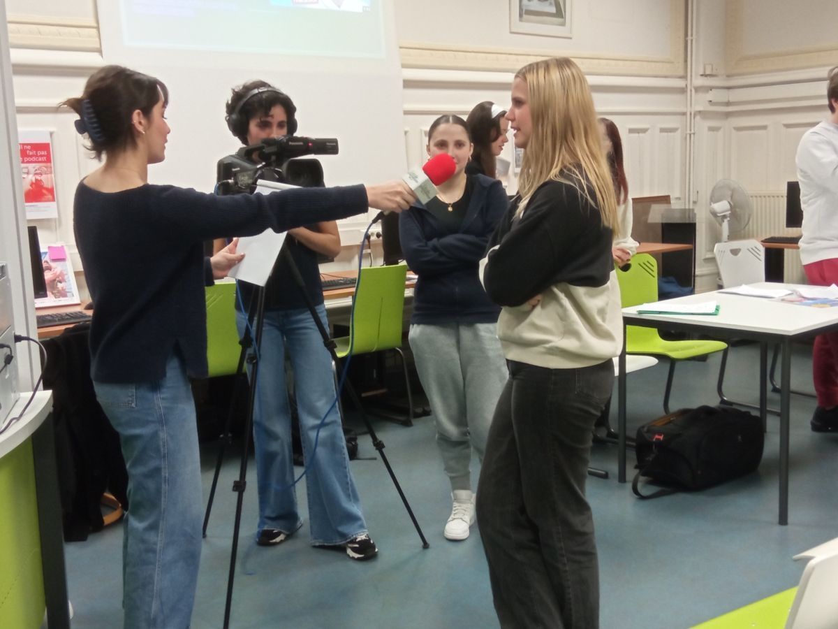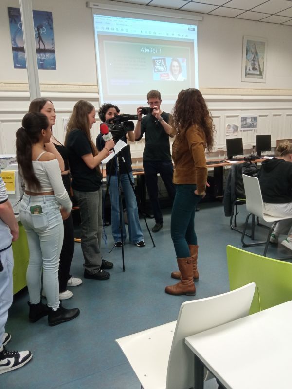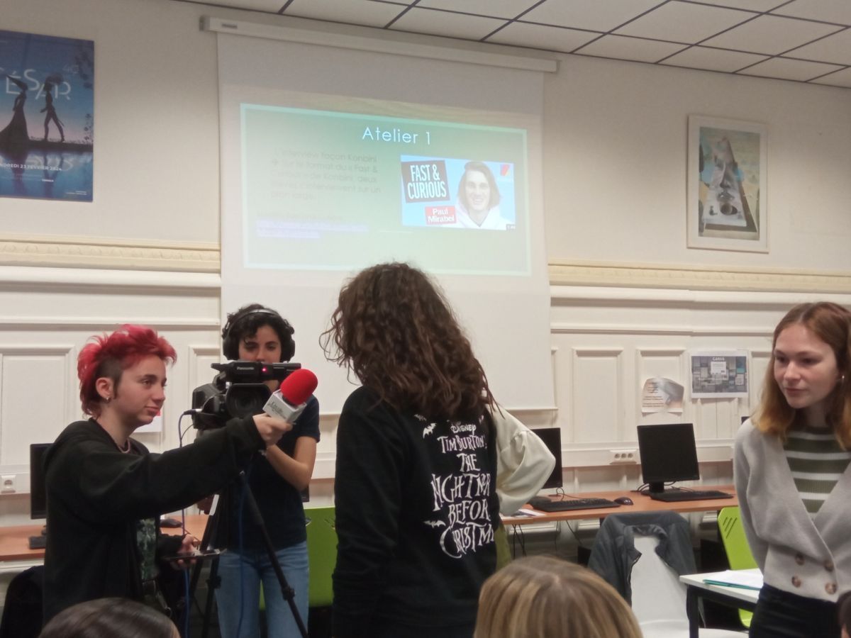 Les étudiants de l'Ecole du Journalisme de Nice ont encadrés nos élèves pendant des ateliers sur "fake-news et AI", et sur "mener une interview".