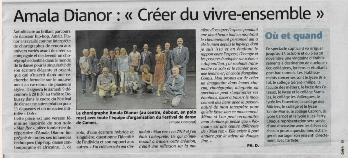 Une proposition du Fesival de Danse de Cannes spécialement adaptée pour investir les établissements scolaires et susciter la rencontre entre les élèves et les artistes.