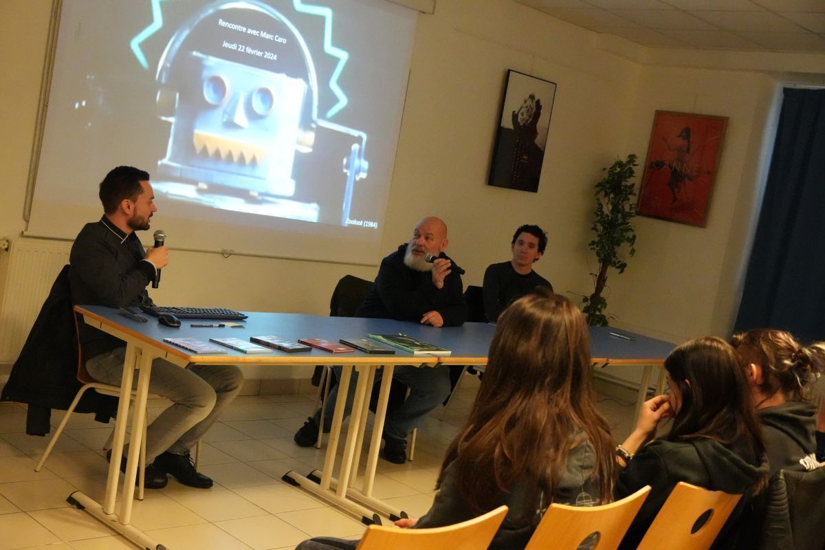 Avant de partir en vacances, les élèves de première et terminale en spécialité cinéma-audiovisuel ont eu la chance de passer une matinée avec le réalisateur et auteur de bandes dessinées Marc Caro.