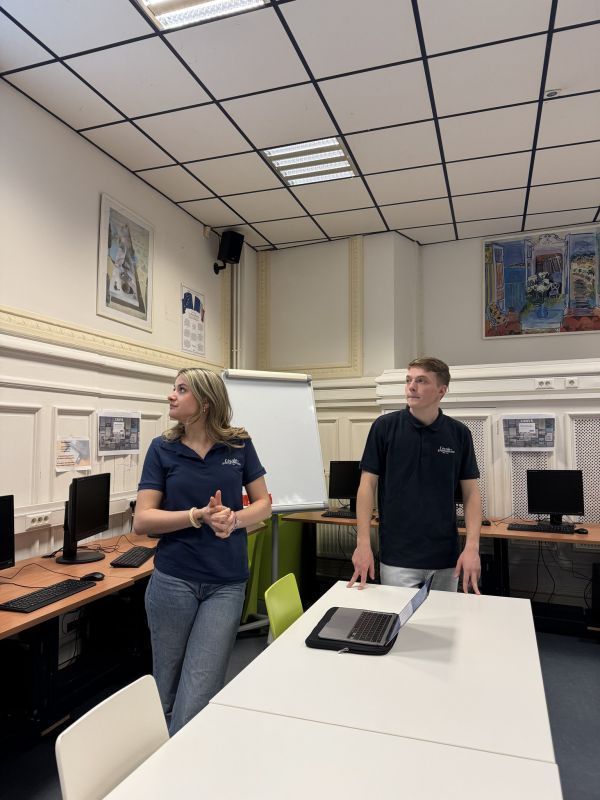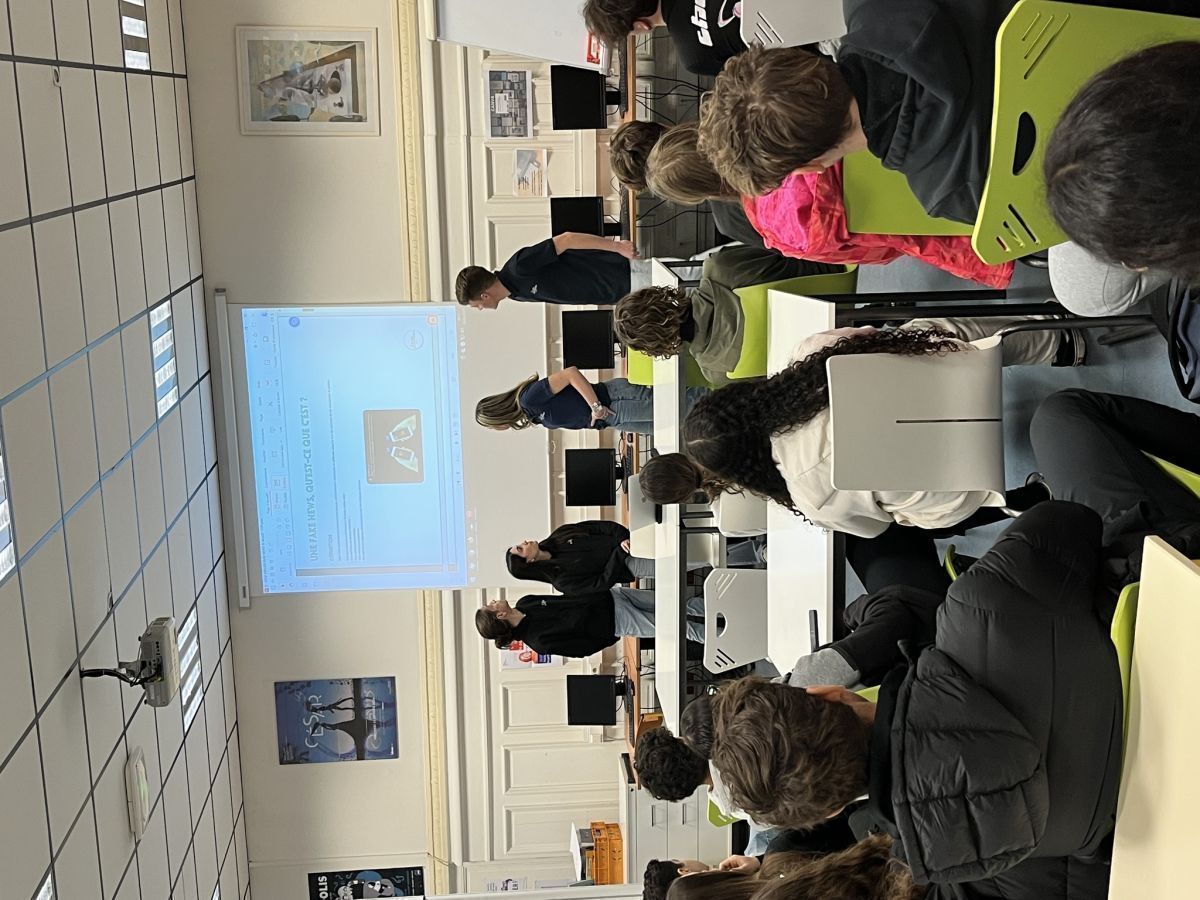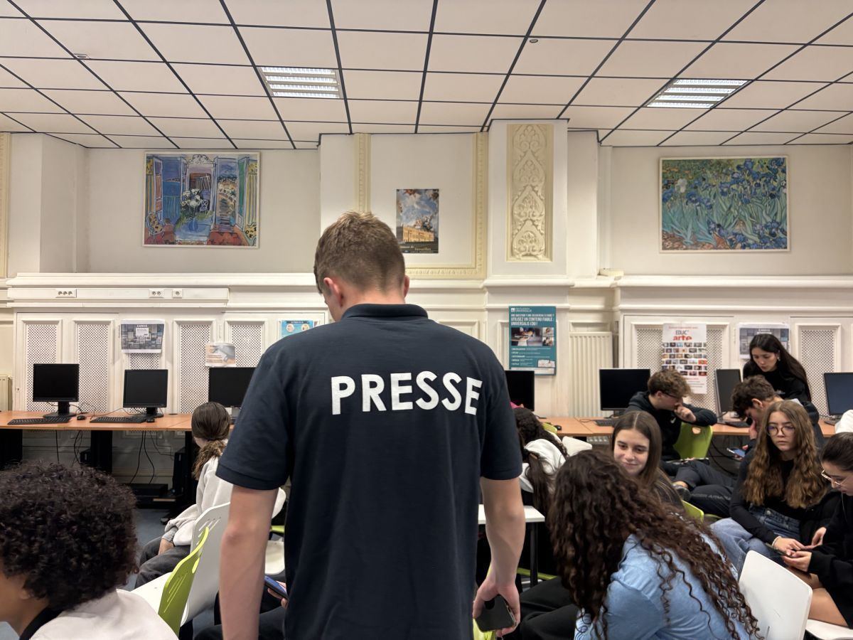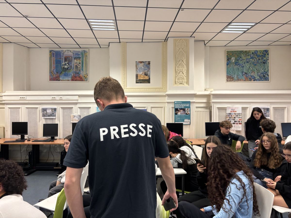 Une classe de 1ère HGGSP a aussi eu la chance de visiter les locaux de l'EDJ de Nice, et de participer à plusieurs ateliers : fake news et IA, mener une interview, duplex TV