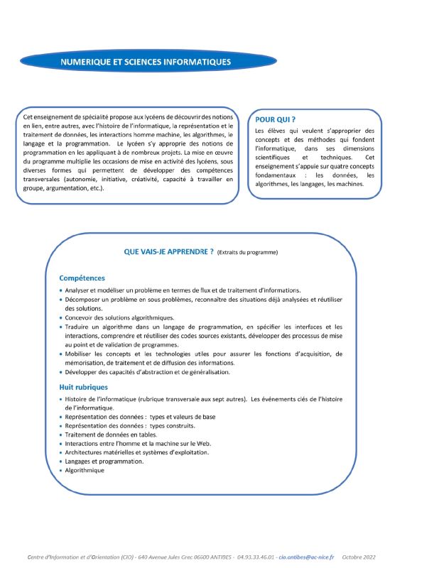 Présentation de la spécialité NSI par le CIO d'Antibes