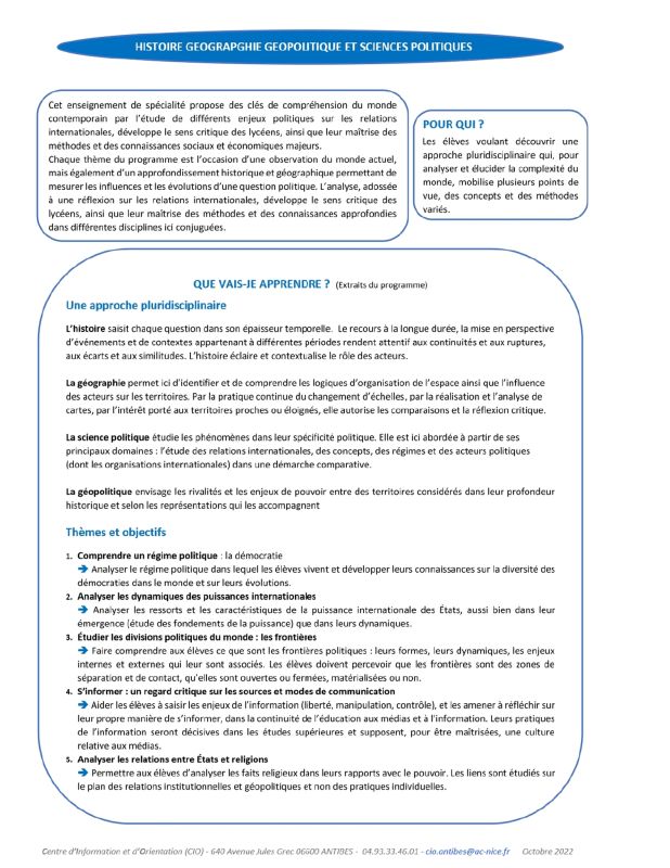 Spécialité Histoire-Géographie, Géopolitiques et Sciences Politiques (HGGSP)