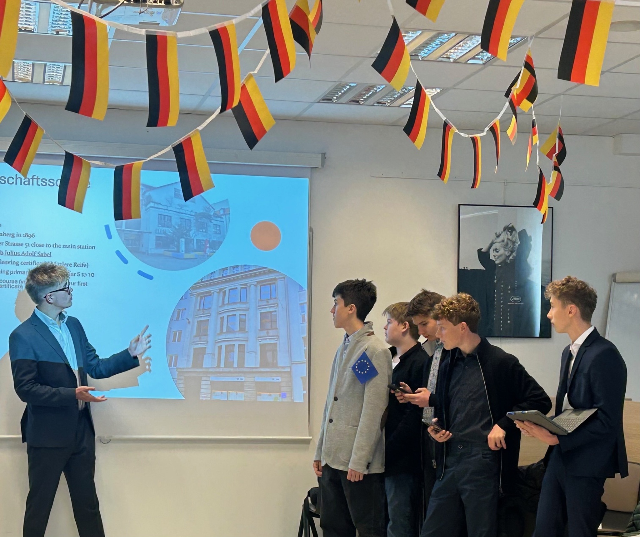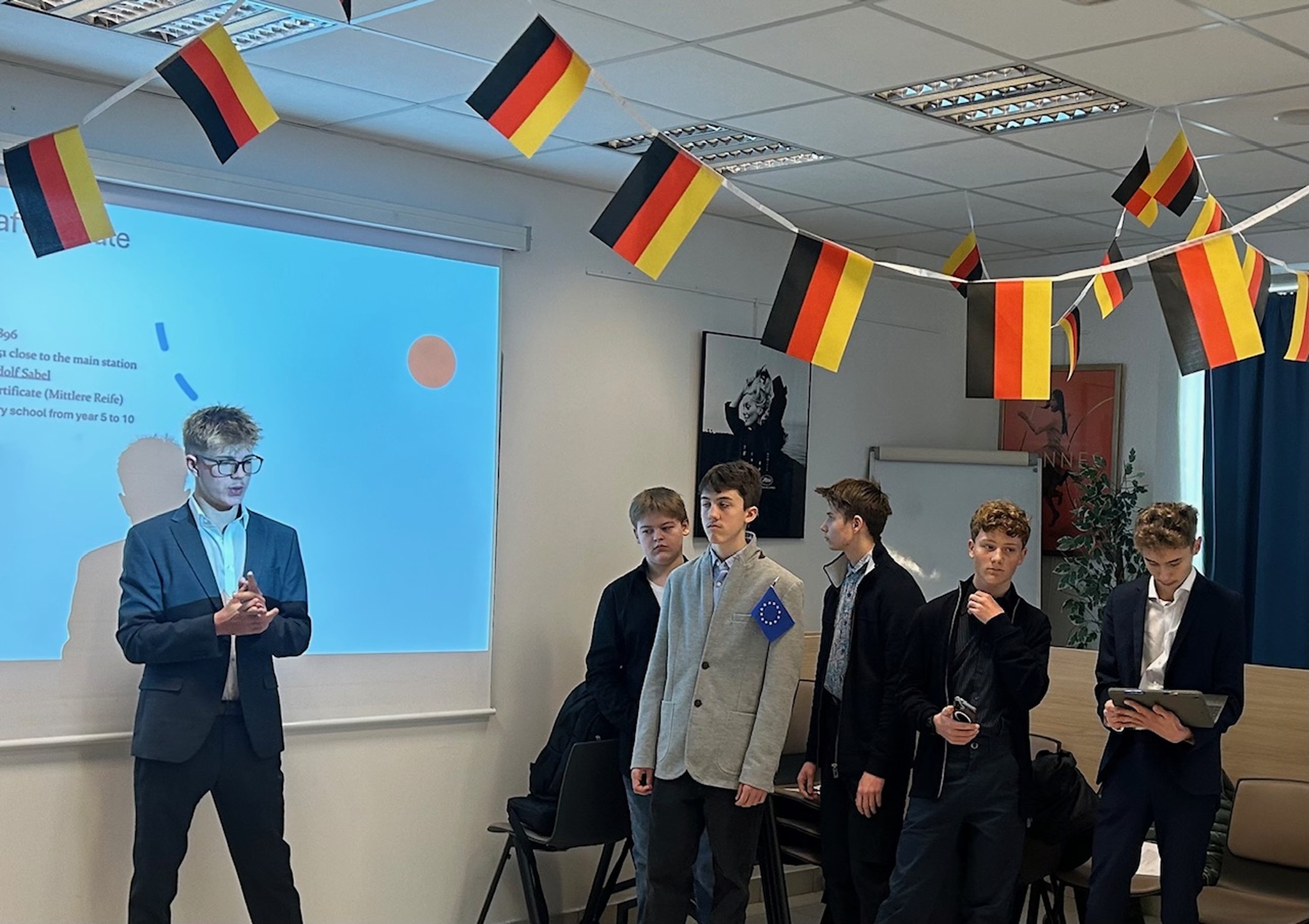 Le programme Erasmus + consiste en un échange entre 2 lycées européens. Ici, nous recevons le lycée Sabel-Schule de Munich, qui a un équivalent du Bac avec une spécialité Gestion-Marketing similaire à notre filière STMG.